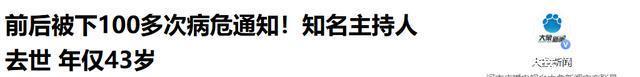 前后被下100多次病危通知!知名主持人去世年仅43岁 2025-06-15