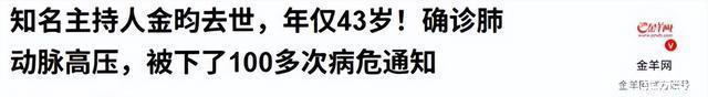 这位主持人金昀因为肺动脉高压与其抵抗了很久斗争,最终没有战胜病魔,其中时间里被多次下达病危通知书。