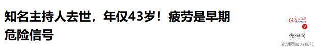 参考信源: 知名主持人去世,年仅43岁!疲劳是早期危险信号 2025-06-15
